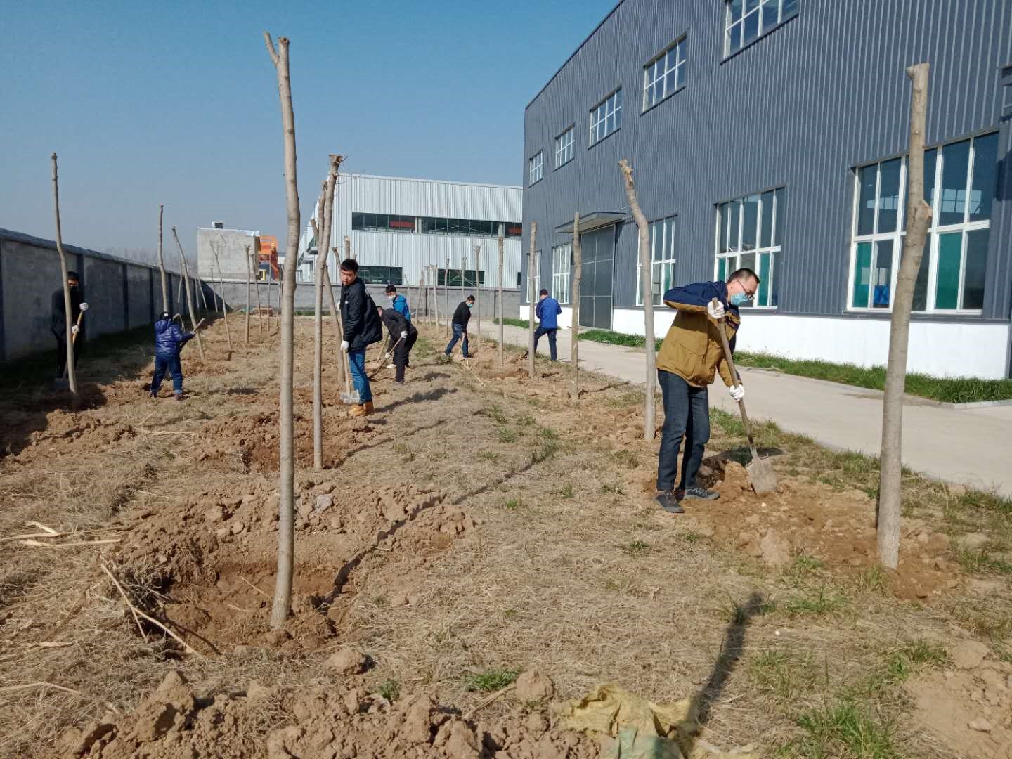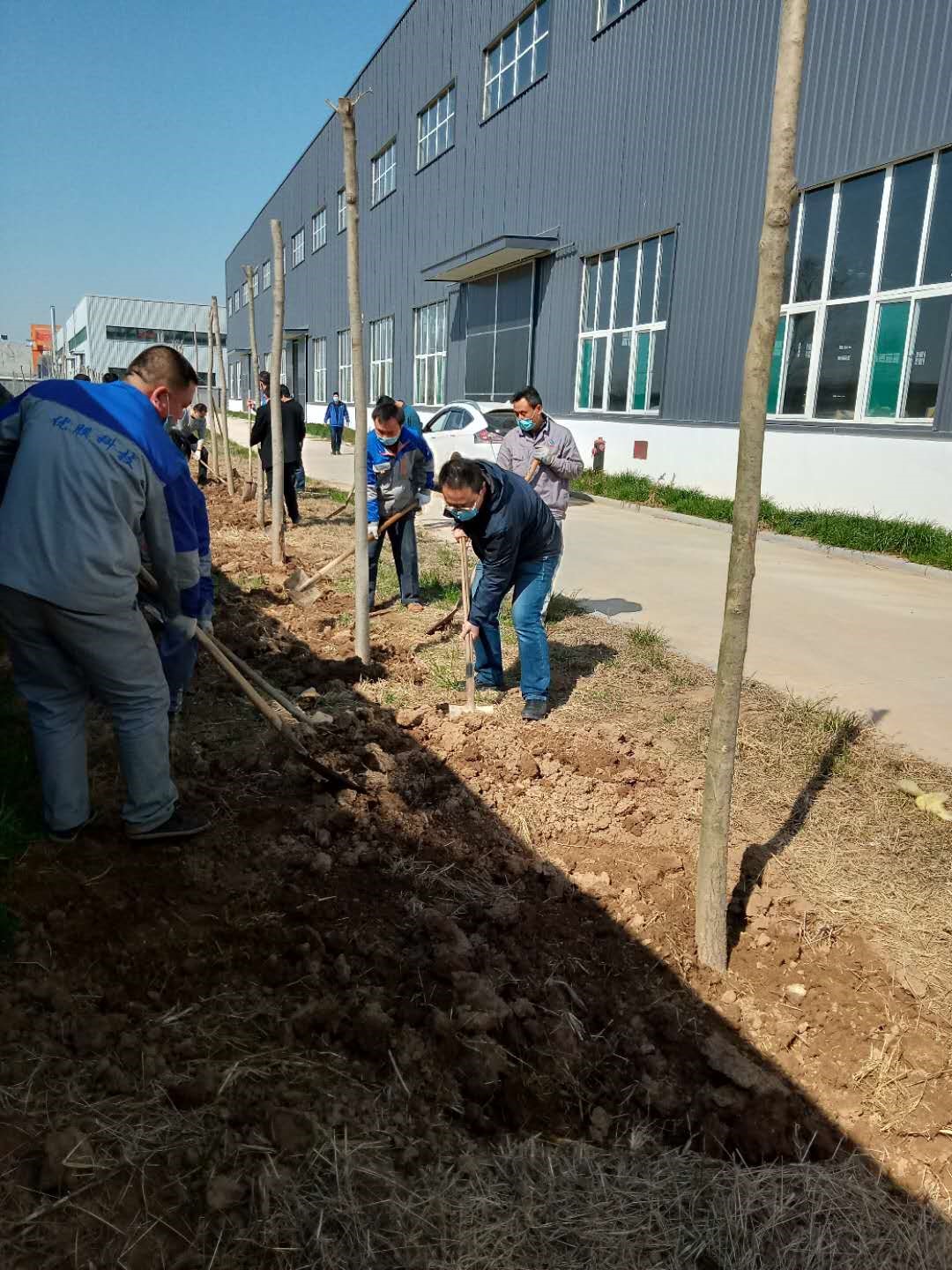 在厂区的领导指挥下,我们全体员工进行了消毒、更换口罩、分发工具等准备工作。姚总带领全体人员进入绿化带去植树。本次植树的位置是厂区的周围,此次活动种植了白蜡、海棠、柿树。活动现场,大家干的热火朝天,大家忙忙碌碌的身影交织成一幅幅生动的画面。